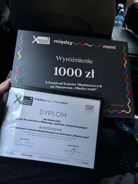 Helena Bek, uczennica Zespołu Szkół nr 127, została wyróżniona przez Teatr Polski za oprawę wokalną spektaklu Sonata Belzebuba w X Festiwalu Teatrów Młodzieżowych na Mazowszu „Między nami”!